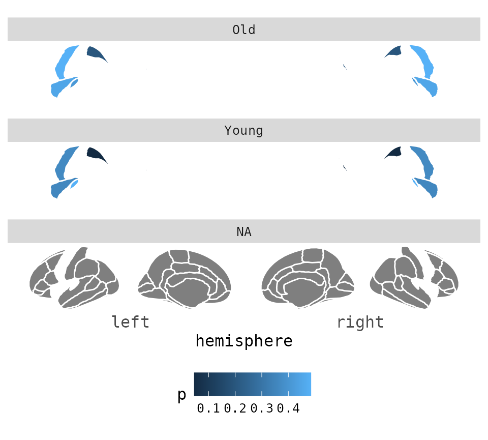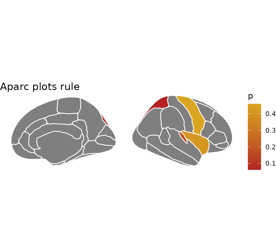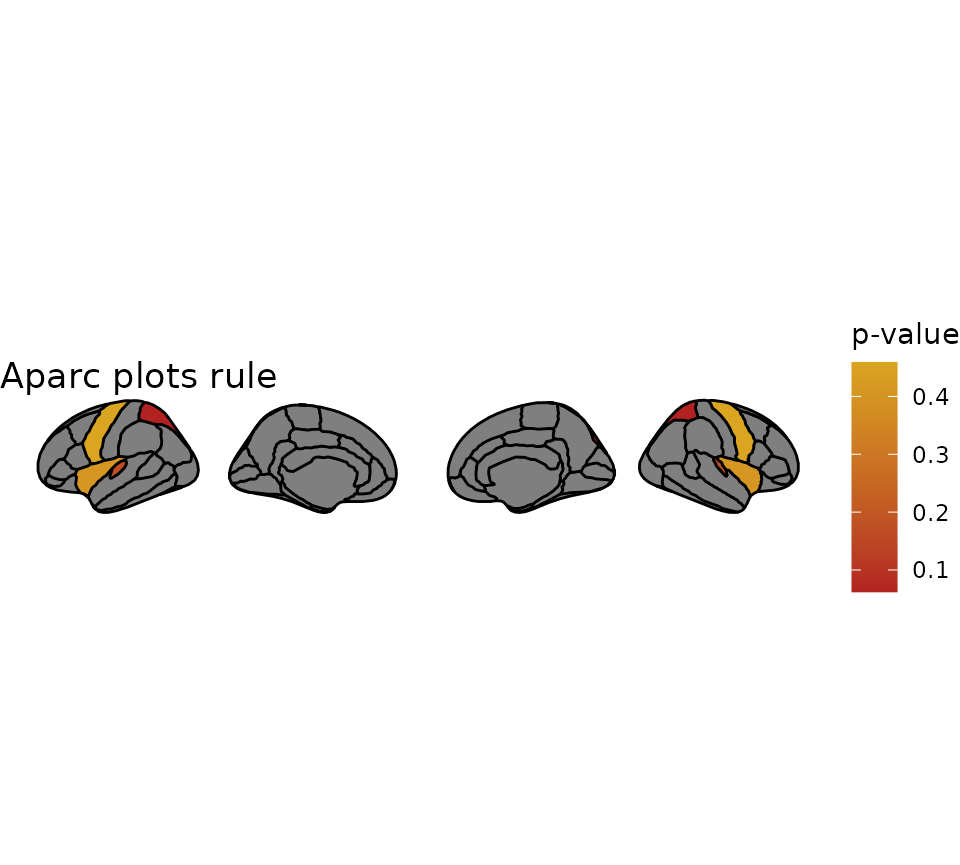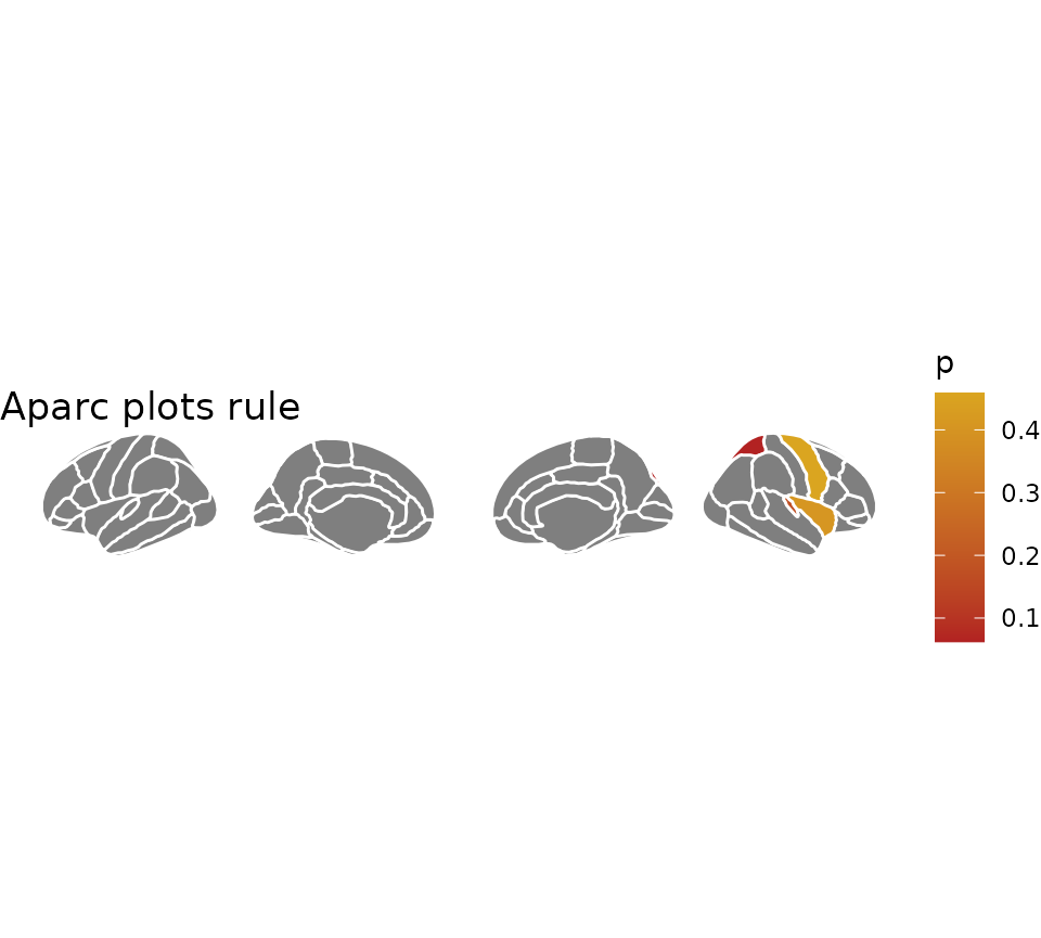 labs(title = "Aparc plots rule", fill = "p-value")## merging atlas and data by 'region'