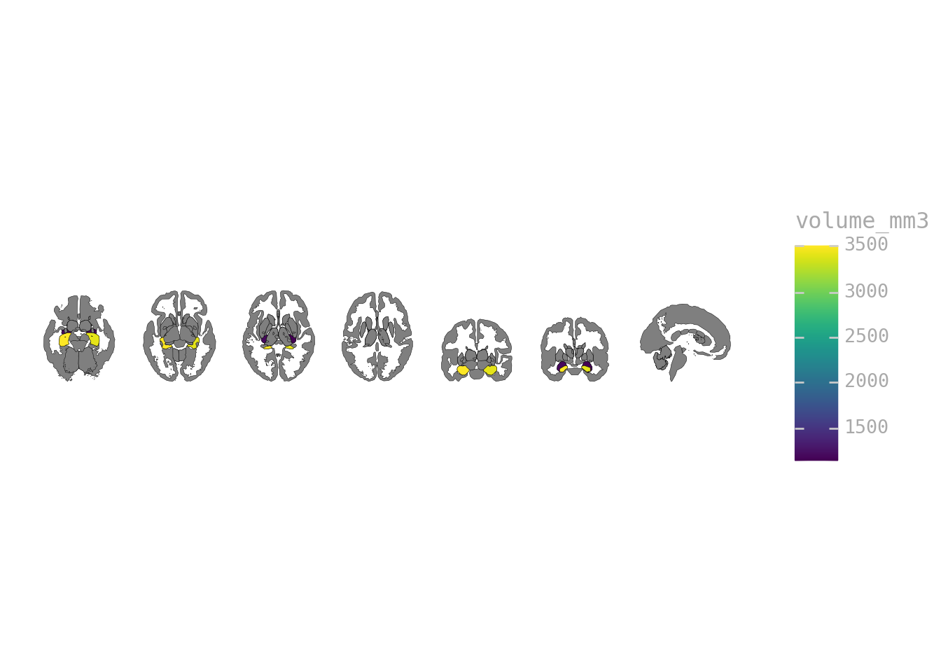 ggplot(volumes) + geom_brain(atlas=aseg(), mapping=aes(fill="volume_mm3"))