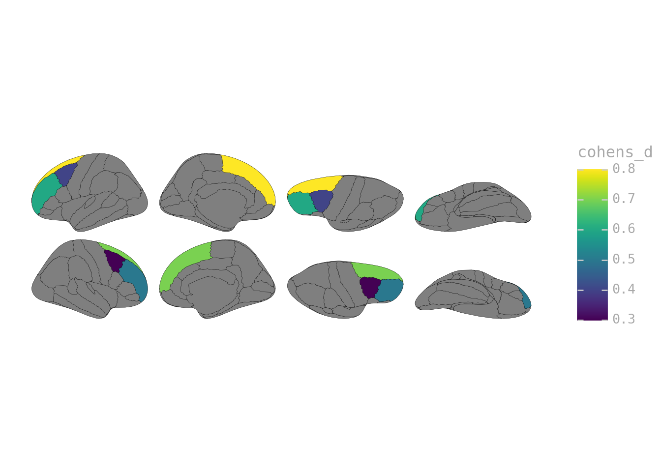 p = ggplot(effect_sizes) + geom_brain(atlas=dk(), mapping=aes(fill="cohens_d"))